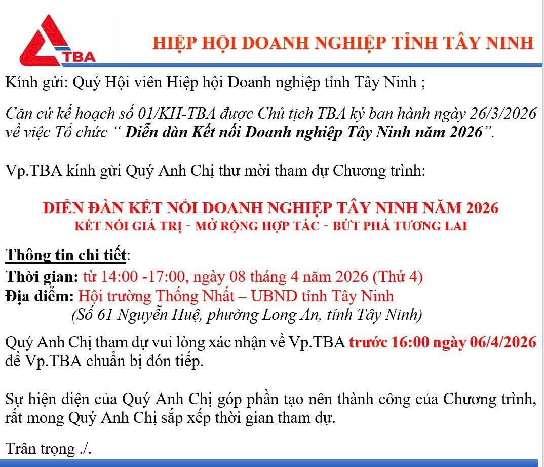 DIỄN ĐÀN KẾT NỐI DOANH NGHIỆP TÂY NINH 2026