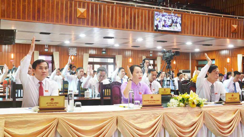 Các đại biểu biểu quyết thông qua nội dung, trương trình kỳ họp thứ 13, HĐND tỉnh khóa XI