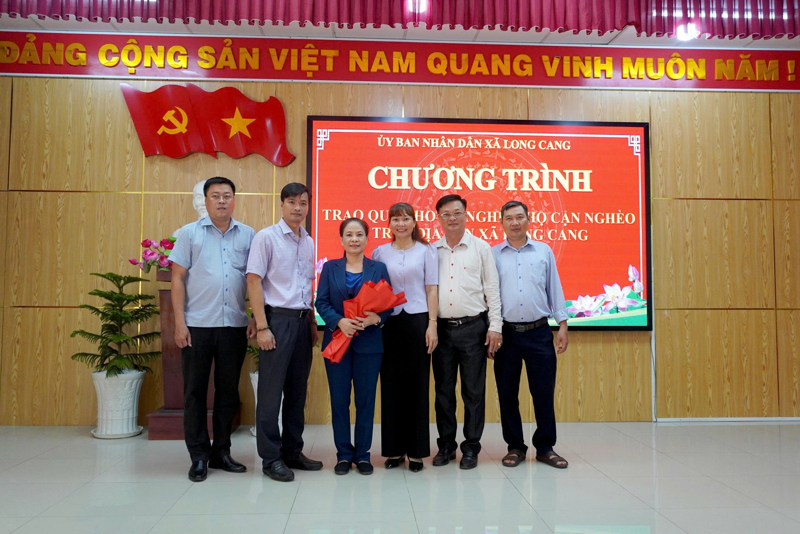 Ghi nhận những đóng góp tích cực của doanh nghiệp trong công tác an sinh xã hội tại địa phương, UBND xã Long Cang đã trao giấy khen và hoa cho các đơn vị tài trợ, thể hiện sự trân trọng đối với những nghĩa cử cao đẹp vì cộng đồng.