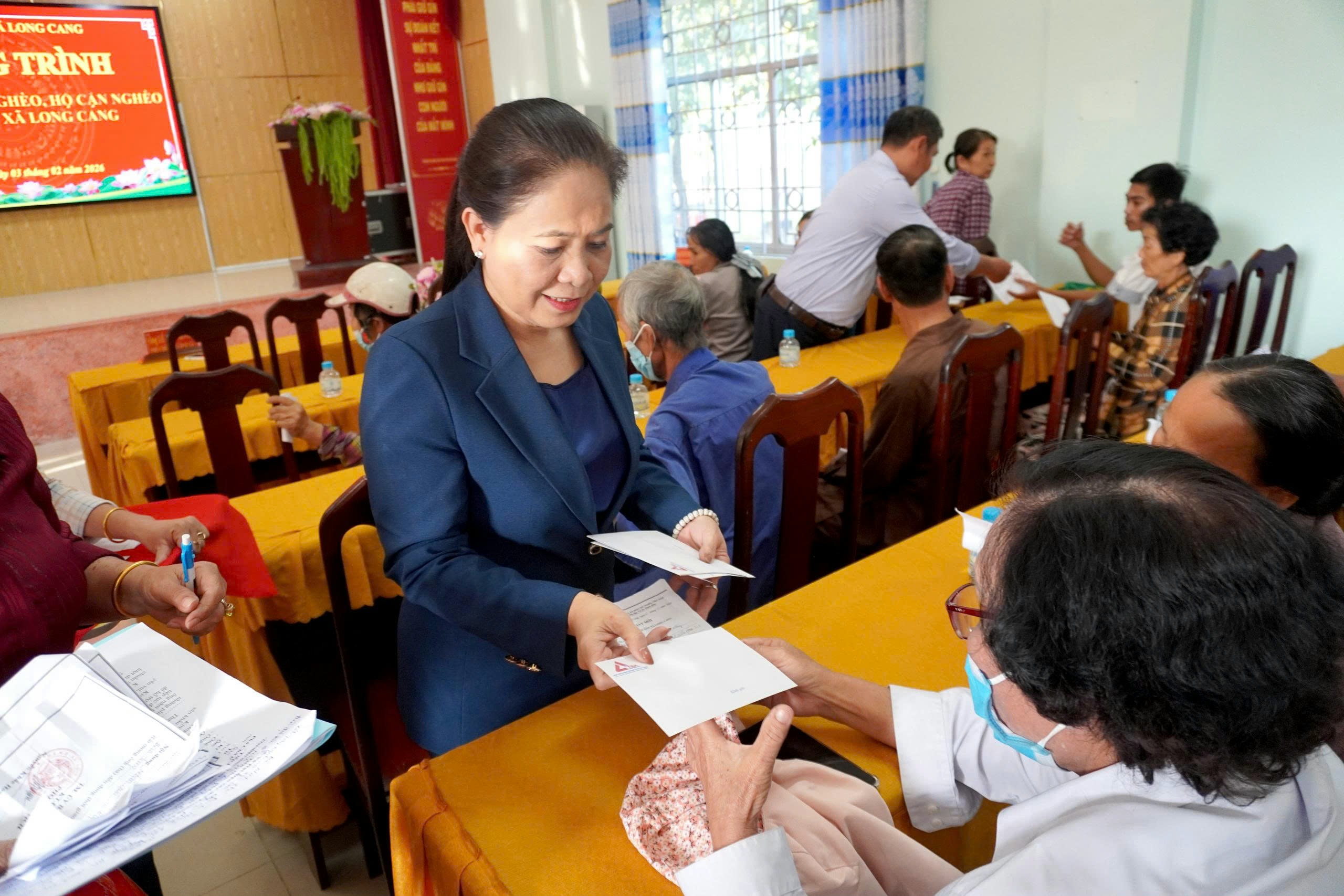 Tham dự và trực tiếp trao quà cho người dân có  Ninh Thị Bích Thùy – Phó Chủ tịch Thường trực Hiệp hội Doanh nghiệp tỉnh Tây Ninh, Tổng Giám đốc Công ty Cổ phần Thép TVP, cùng lãnh đạo UBND xã Long Cang và đại diện các doanh nghiệp đồng hành. Những phần quà Tết không chỉ mang giá trị vật chất, mà còn là sự sẻ chia, động viên tinh thần, giúp các gia đình có thêm niềm tin, nghị lực để vươn lên trong cuộc sống.