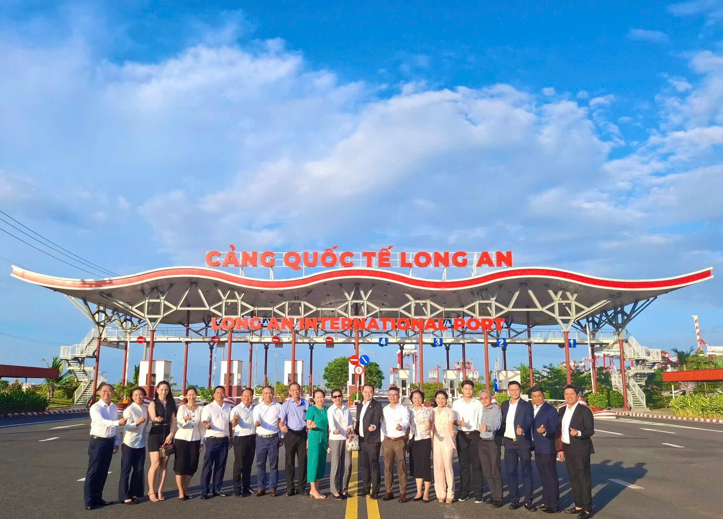 Ban Thường trực của hai Hiệp hội chụp ảnh lưu niệm tại Cảng Quốc Tế Long An